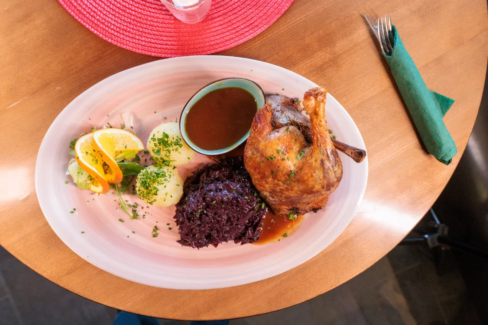 | Hausgemachtes Sauerfleisch mit Bratkartoffeln, Remoulade, Gewürzgurke und Salatgarnitur 2,3,4,11,c,e,k | 13,90 € |