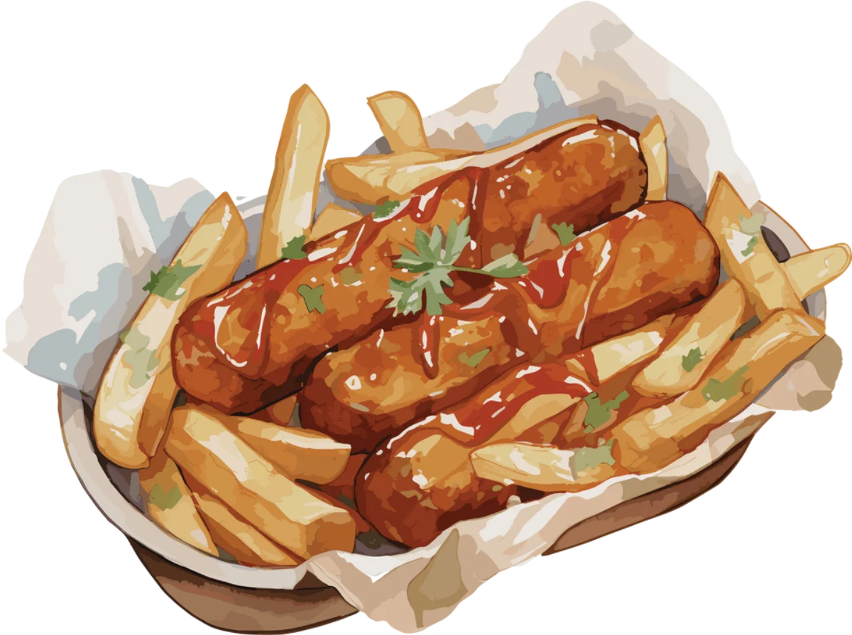Currywurst PommesMit Salatbeilage, Pommes oder Süßkartoffelpommes | 12,90 |